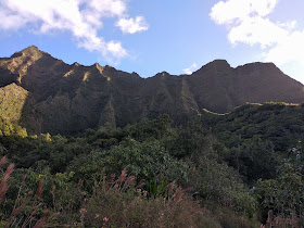 De repente, el sendero se vuelve llano, y después de doblar un risco, aparece el gran Valle de Kalalau
