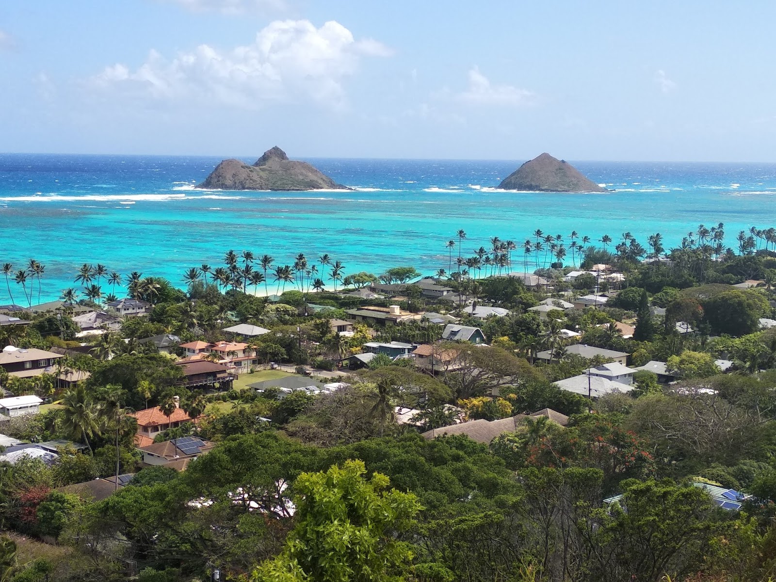 | Vista de la costa de Lanikai, desde el ‘Pillbox Hike’, en el Este de Oahu |