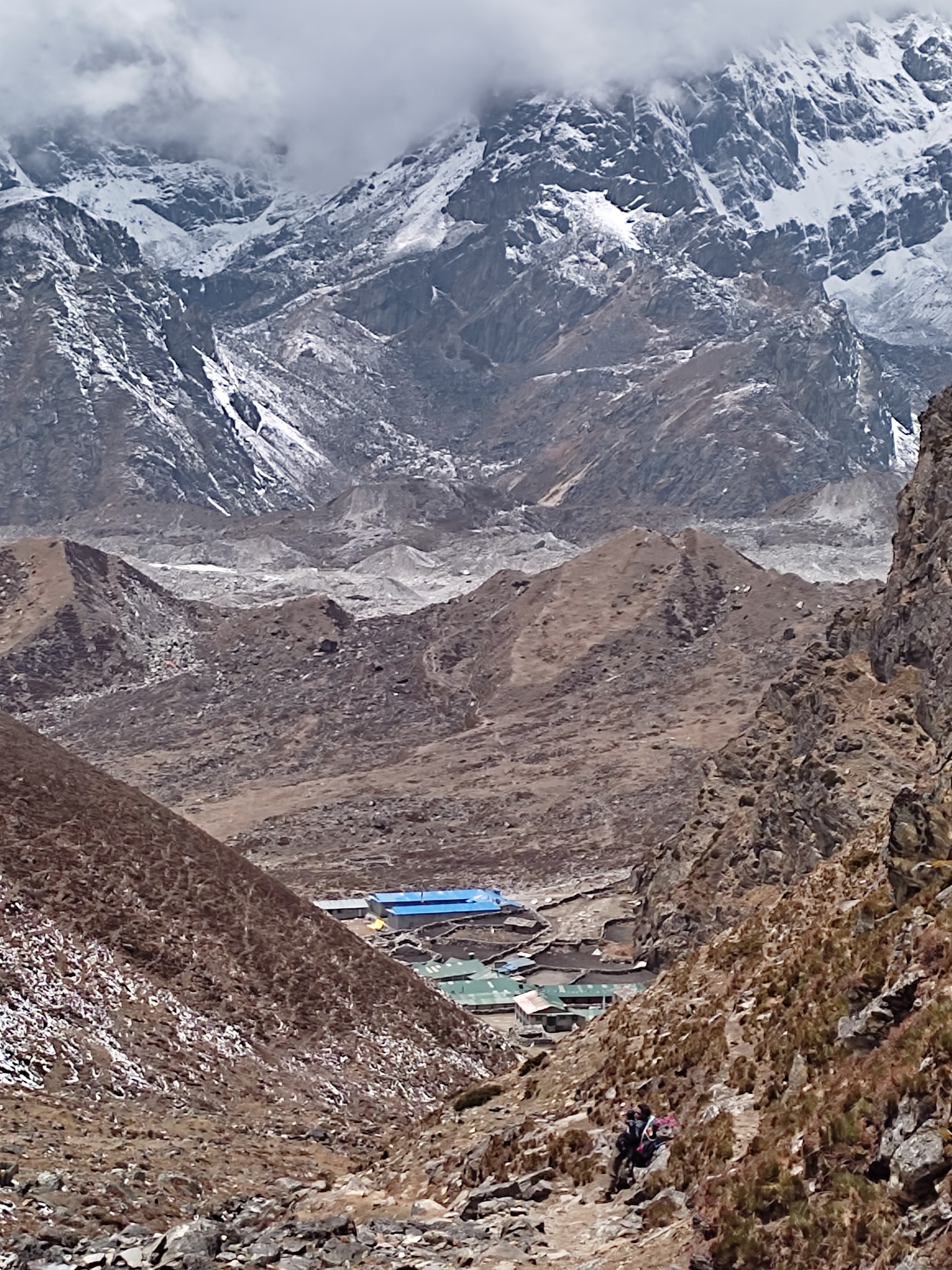 Ahora salimos de Lobuche (4910 m) con un día que pinta nieve...